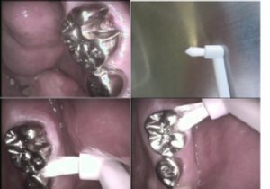 磨きずらい奥歯、歯並びの悪い部分など、ピンポイントで届いてスッキリ。歯と歯の間に差し込むようにして、食べカスを除去したり、歯と歯肉のきわを、なでるように沿わせて、プラークを除去したりと、難しい場所に使います。普段の歯ブラシにプラスして、お使い下さい。いとう歯科では、かぶせ物には、ワンタフトの歯ブラシの直径の形状の先端に合わせて、あらかじめ、技工士さんが設計してあるので、非常に清掃がしやすくなっております。下の写真がその例です。